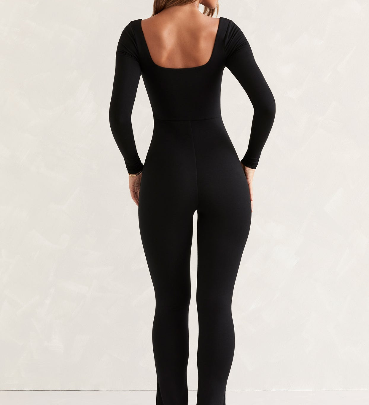 Aura Vestido Mini de Manga Larga con Escote Cuadrado en Negro